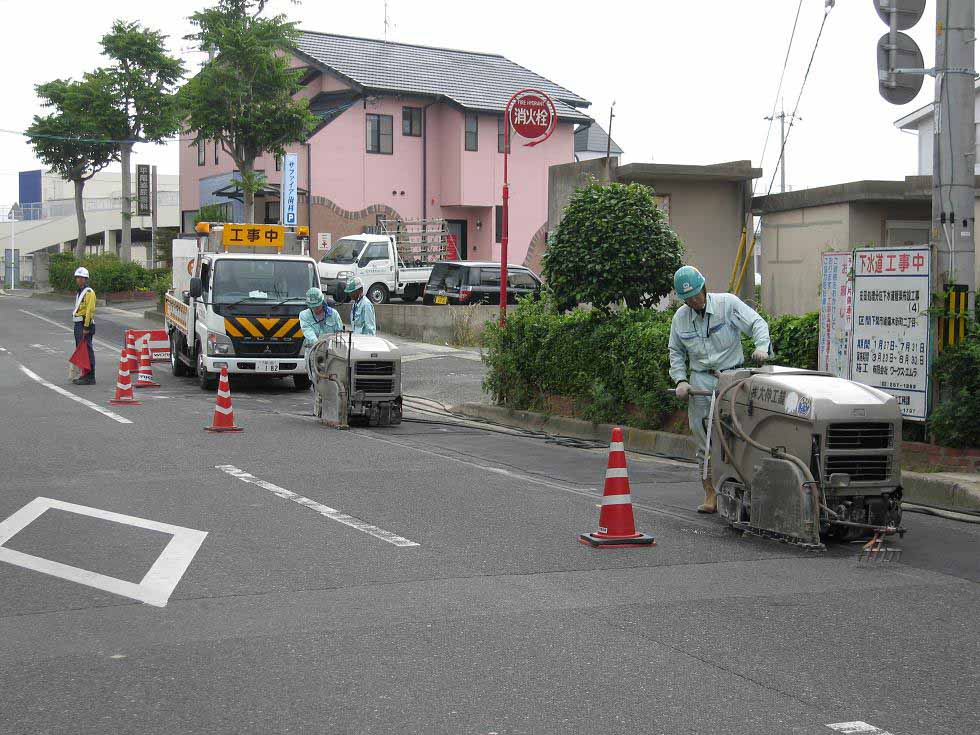 地中に上・下水道管、ガス管、電気、電話管などを埋設する為に舗装を切断する管路工事